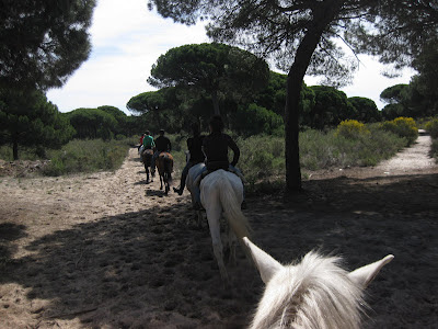 Los que seguís mis fechorías sabréis que no es nuestra primera ruta ecuestre. Hace poco más de un año hicimos una por aquí cerca. Como nos gustó la experiencia y teníamos ganas de ver un poco el parque de Doñana, aprovechamos para matar dos elefantes pájaros de un tiro.
