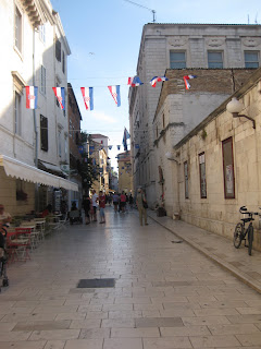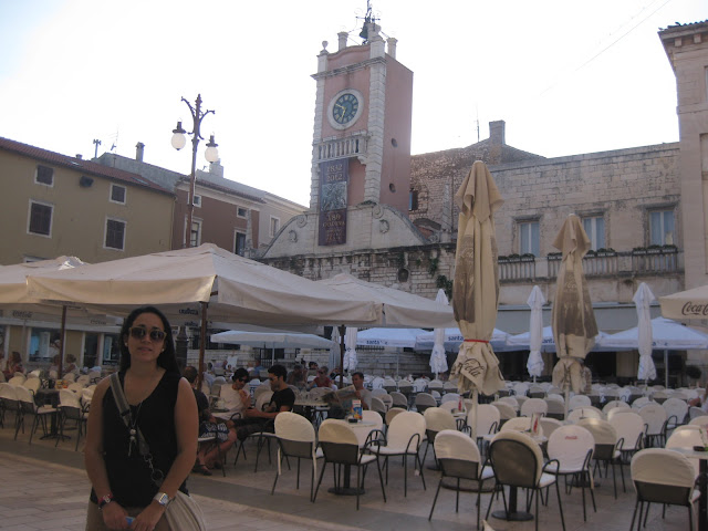 Aquí a punto de ser atropellado por la Policija frente a la Puerta de Zadar, con el León de San Marcos, símbolo de Venecia. Nota histórica: Dalmacia estuvo bajo influencia veneciana buena parte de su historia.