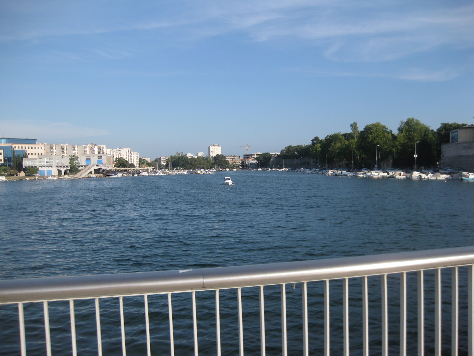 Acercándonos al centro. Como veis, la falta de playa no es excusa para tomar el sol. Y bañarse, que os aseguro que la gente se bañaba. En toda la cosa abunda esta modalidad bañística, un poco incómoda para mi gusto.