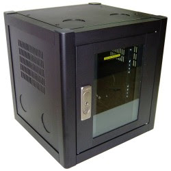 Después de mucho cavilar, decidimos meterlo todo en un armario tipo rack pero algo más pequeño. Lo mejor que encontré fue esto:
