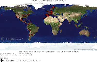 Creo que lo que toca es daros las gracias por leer las tontunas que pongo. Bueno, la verdad es que no me pagan por cada lector, así que tampoco es que me importe mucho que lo leáis, sólo lo hago por los puntitos rojos, para verlos crecer. Por cierto, como el Aquilino siga entrando desde Tromso, su puntito va a reventar en breve.