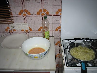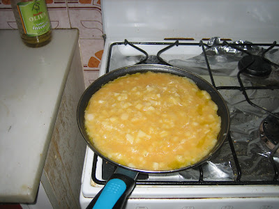 Now let the tortilla cook until it has its down solid and golden. It is difficult to say the exact moment, mainly because we can't see through the pan, but it usually takes 6 or 8 minutes of cooking. See Picture 8.