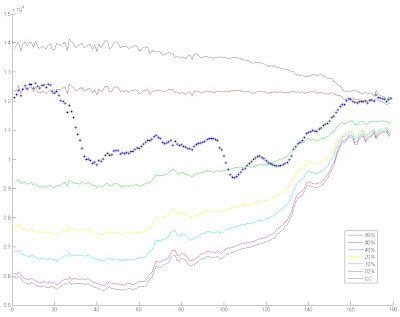 Y llegamos a donde quería llegar. Esta semana, tras muchas horas de Matlab he conseguido una gráfica que refleja todos mis problemas calibracionales. La estudio durante horas tratando de ver más allá de la inmensidad, cual Tocho pensando en Campos II.