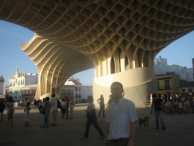 Cuando, casualidades de la vida, nos vinimos a vivir a Sevilla, una de nuestras primeras misiones fue localizar esta construcción para ver si la habían terminado y qué aspecto tenía. No nos acordábamos del sitio exacto, pero cuando lo vimos lo reconocimos de inmediato. Se llama Metropol Parasol y es una aberración arquitectónica de dudoso estilo. Ya ha sido inaugurado:
